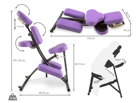 Dieser Massagesessel aus schwarzem Stahl zeichnet sich durch seine große Gebrauchsfestigkeit , seine Faltbarkeit und die Möglichkeit aus, die Position seiner Elemente an die Bedürfnisse jedes Benutzers anzupassen. Inklusive Tasche für einfache Handhabung, Aufbewahrung und Transport.