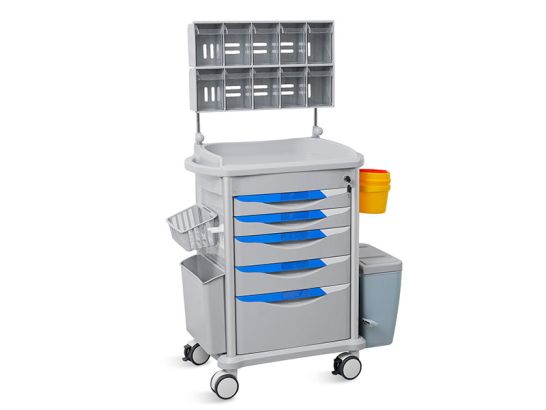 Chariot d'anesthésie avec 5 tiroirs, plusieurs compartiments