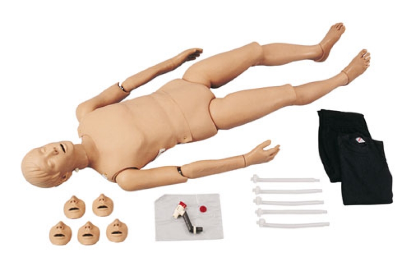 pouls carotidien conduit avec une poire, système de valve des voies respiratoires, les pièces amovibles de la face, les repères anatomiques pour déterminer la position de la main correcte pour les compressions.