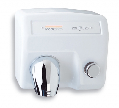 Handmatige handdroger Saniflow in wit porcelein gietijzer