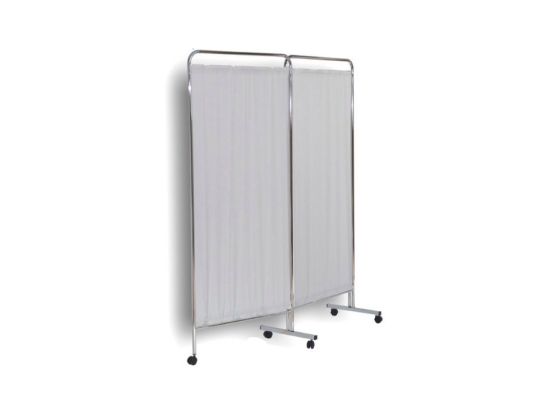 Tweedelig opvouwbaar scherm met geplastificeerde verwijderbare stoffen.