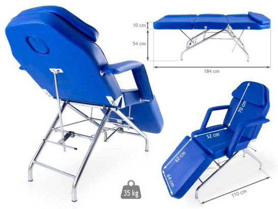 Multifunktions Stuhl Liege aus Stahl und widerstandsfähige Polsterung mit 3 Teile, abnehmbare Armlehnen und Gesichtspolster. Einfache Einstellung der Position von Rückenlehne und Beinstütze durch ein praktisches manuelles System.