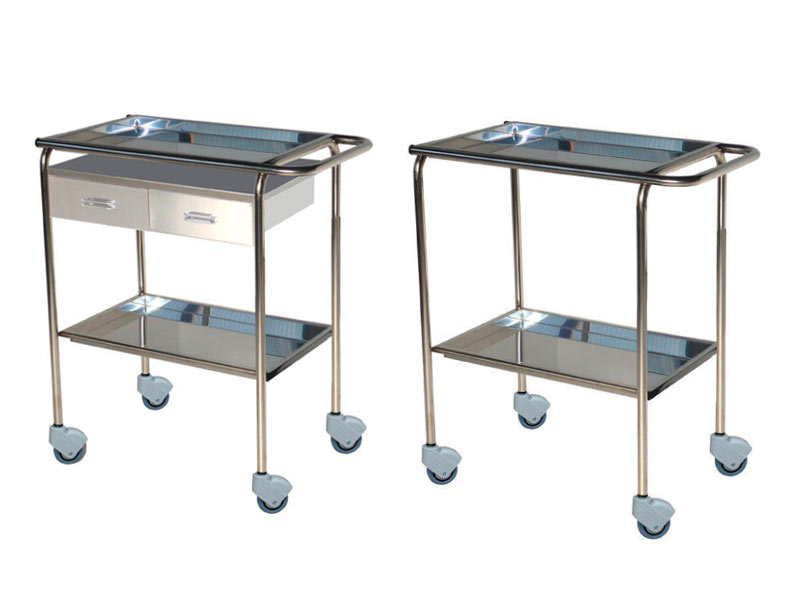 Chariot de pansement en acier inoxydable, sans seau et sans porte-bouteille.