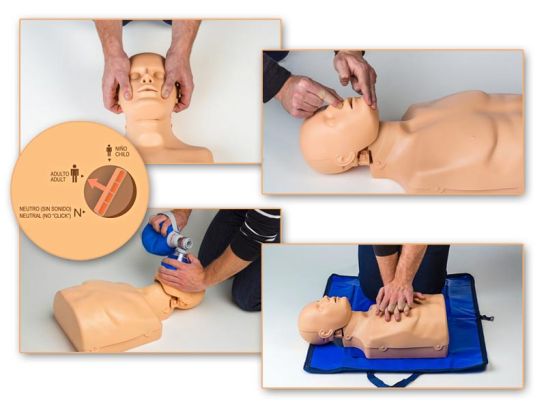 - L'ensemble du système respiratoire du Practi-Man Advance est réel, y compris le nez qui permet d'exécuter la fonction la plus réaliste de tous les simulateurs de base sur le marché. Le nez du Practi-Man Advance est relié à la valve et au poumon permettant une pratique complète de la RCP. En situation réelle, il faut fermer le nez avec les doigts pour faire du bouche à bouche et le nez de Practi-Man Advance a cette fonction, il est indispensable de garder le nez bien fermé et de placer la tête en arrière de manière à ce que le poumon se remplit et la poitrine se soulève. C'est grâce à la valve qui fait partie du système. La valve respiratoire est située à l'arrière du cou et est attachée au poumon. Le système de valve est unique et permet à l'air de passer par la bouche jusqu'aux poumons. De plus et très important, la valve dispose d'un système anti-retour, cela signifie que l'air une fois insufflé par un élève ne retourne pas dans la bouche et cela permet une pratique plus sûre, évitant autant que possible la possibilité de contagion. Le système de fixation du poumon au torse aide à maintenir le poumon étendu pendant la pratique.