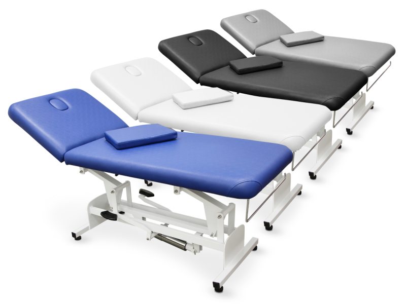 Nouvelle table hydraulique BASIC à 2 sections multidisciplinaires avec réglage en hauteur et dossier rabattable. Structure en acier et rembourrage d'une grande durabilité et d'un minimum d'entretien. Poids maximum supporté de 180 Kg.