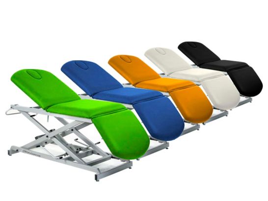 Hydraulická 3-sekční nosítka typu židle s vertikálním zdvihem bez bočního pohybu, s držákem role a obličejovým krytem.