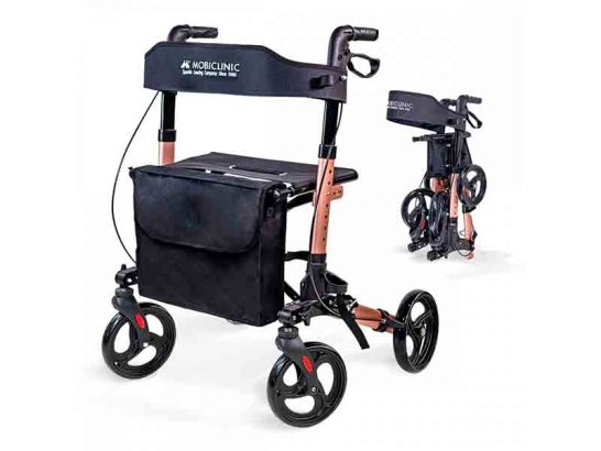 Die großzügige Einkaufstasche und der Gepäckträger machen das Tragen von Taschen und Einkäufen zum Kinderspiel und reduzieren die Belastung spürbar. Zudem sorgt der praktische Stockhalter dafür, dass Sie Ihren Gehstock stets griffbereit haben. Das elegante, roségoldene Design kombiniert modernen Stil mit Funktionalität und macht den Rollator Trajano zu einem attraktiven Hilfsmittel, das gerne eingesetzt wird.