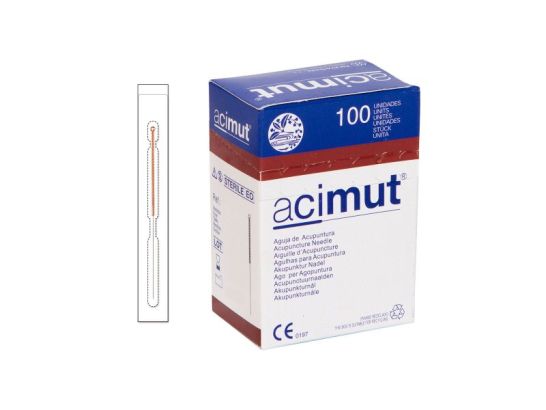 Aguja De Acupuntura Cosmética De Acero Siliconada Con Mango De Cobre Con Cabeza Y Sin Guía 0,18 X 7 Mm / 38 X 0,28 Cun