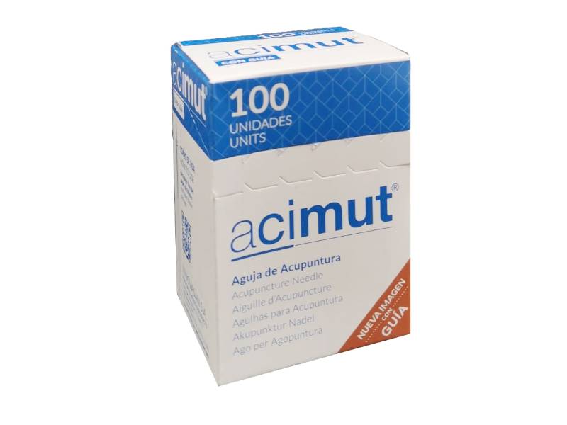 Aguja De Acupuntura De Acero Siliconada Con Mango De Plata Con Cabeza Y Con Guía, 100 Uds Acimut