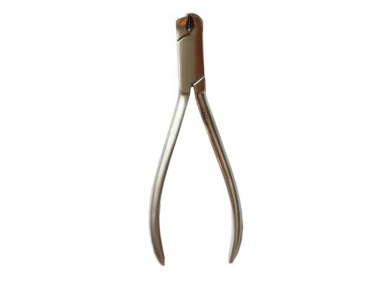 Alicate de acero inoxidable de 14 cm para cortar alambres de ortodoncia con precisión, resistencia y manejo cómodo. Ideal para profesionales dentales.