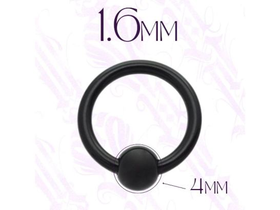 Aro de piercing cerrado de 1,6mm con bola de 4mm color negro