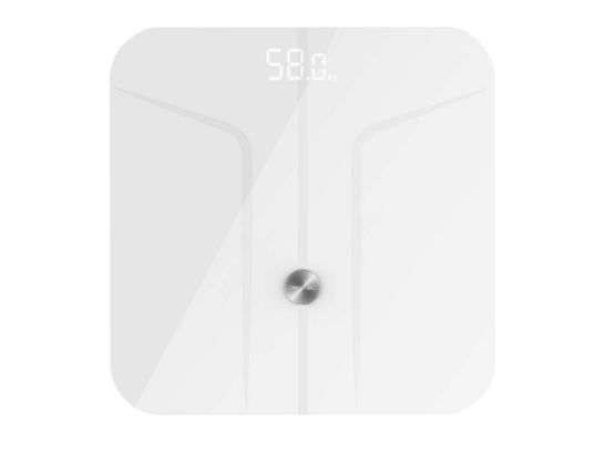 Báscula digital precisa con Bluetooth, análisis corporal en 10 parámetros y función BabyWeight. Diseño seguro y elegante para un control total de tu salud.