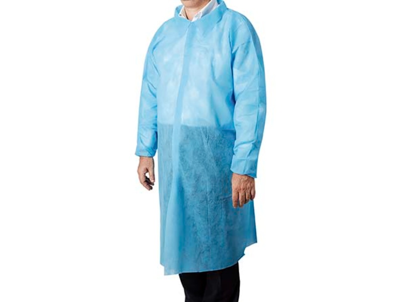 Bata polipropileno azul XL con cierre de velcro, ideal para protección en entornos laborales. Caja con 100 unidades, ligera y libre de látex. ¡Tu aliado en seguridad!