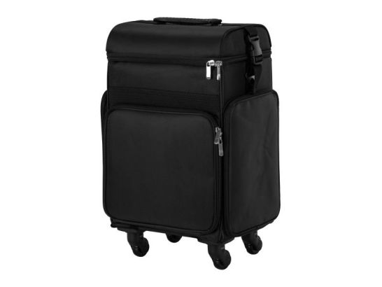 Bolsa con trolley negro, resistente y práctica, perfecta para profesionales de belleza que necesitan transportar y organizar sus herramientas con estilo y comodidad.
