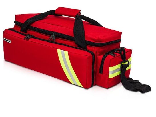 Diseñada para ofrecer una solución completa para el transporte de material médico, cuenta con tres bolsillos externos, dos de ellos diáfanos y uno frontal con subdivisiones internas adicionales y gomas elásticas. Es una bolsa de emergencias duradera y resistente, que ha sido fabricada con materiales de alta calidad con el fin de asegurar su durabilidad, como sus cremalleras de gran resistencia, bandas reflectantes nocturnas, material lavable y asas y bandoleras reforzadas.