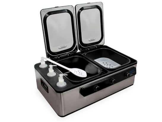 - Su generoso volumen de 11 litros permite un calentamiento simultáneo y eficiente de aceites y piedras.