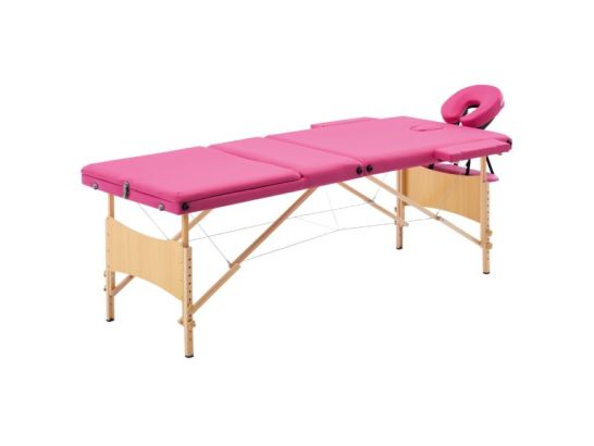 Camilla de Masaje Plegable 3 Secciones en Madera Rosa con cojín relleno