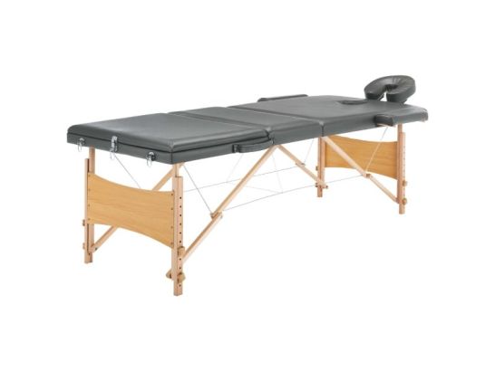 Camilla de masaje plegable 3 zonas antracita, con estructura de madera, ideal para masajistas y principiantes. Comodidad, elegancia y fácil transporte. ¡Transforma tus sesiones de bienestar!