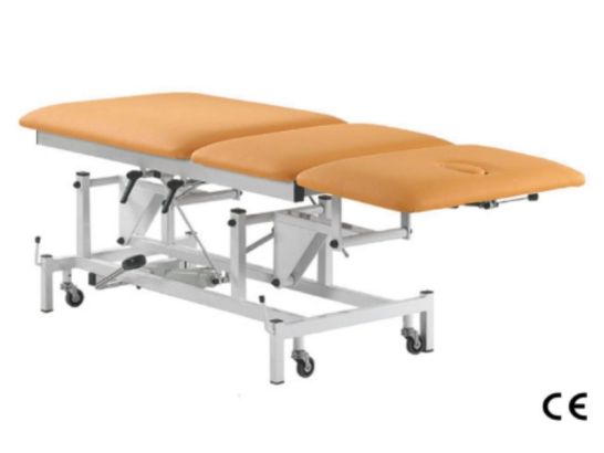 Camilla eléctrica de alta calidad con pedal neumático, secciones abatibles, Trendelemburg y más. Robusta y versátil.
