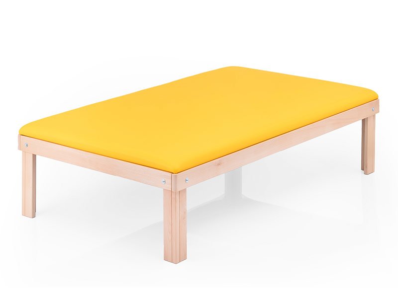 Camilla fija profesional de madera de una sola sección para tratamientos con el método Bobath.