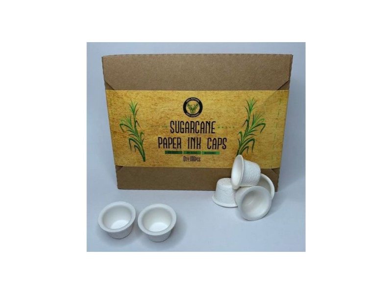 Cápsulas biodegradables para tinta de tatuar hechas de pulpa de caña de azúcar. Respetuosas con el medio ambiente y disponibles en 3 tamaños. Pack de 100 unidades.