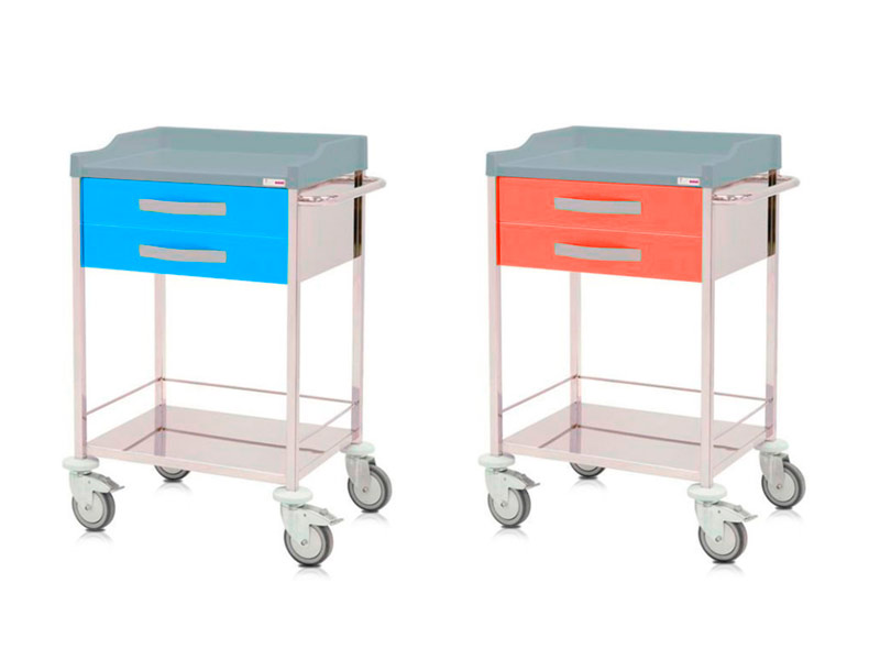 Carro de curas y urgencias, acero inox. 2 cajones superiores y balda inferior 2 cajones y balda, 62x48x96 cm