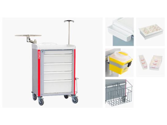 Nuestro carro de emergencia de 600 x 400 con cajones unidos garantiza la disponibilidad inmediata de los equipos y productos necesarios para las primeras intervenciones de emergencia con total seguridad.