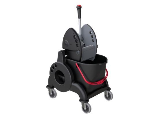 Carro Giotto 25 L Reuse con Prensa Negra: Compacto y versátil, este carro es perfecto para organizar y transportar tus utensilios de limpieza. Incluye una prensa para un escurrido eficiente.