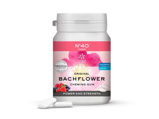 Chicles con esencias originales de Flores de Bach No.40 «Energía». Con sabor a grosella y 42 unidades por envase de 60g.