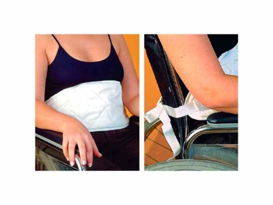 Prevención de las caídas por desplazamiento y sus consiguientes lesiones, de la silla de ruedas y de asientos con respaldo. En personas que tienen alterado el sistema del equilibrio y que por riesgo de desplazamiento en sedestación precisan sujeción a la silla de ruedas. Indicado en centros socio-sanitarios (hospitalarios, geriátricos y psiquiátricos) y en domicilios particulares.