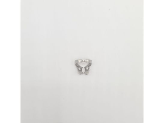 Clamp odontológico 29, ideal para aislamiento dental, ofrece sujeción segura y cómoda con varias figuras para adaptarse a diversas necesidades clínicas.