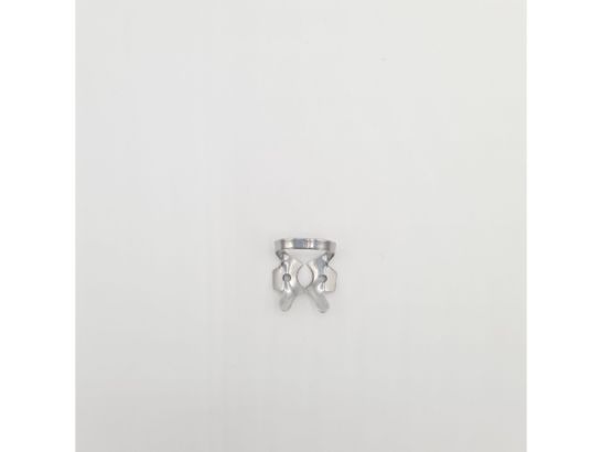 Abrazadera Clamp 8 en acero inoxidable para un aislamiento dental seguro y efectivo, ideal para tratamientos clínicos precisos y cómodos.