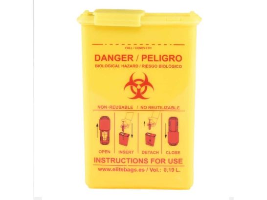 - Capacidad de 125 ml, suficiente para almacenar una cantidad considerable de material punzante de forma segura.
