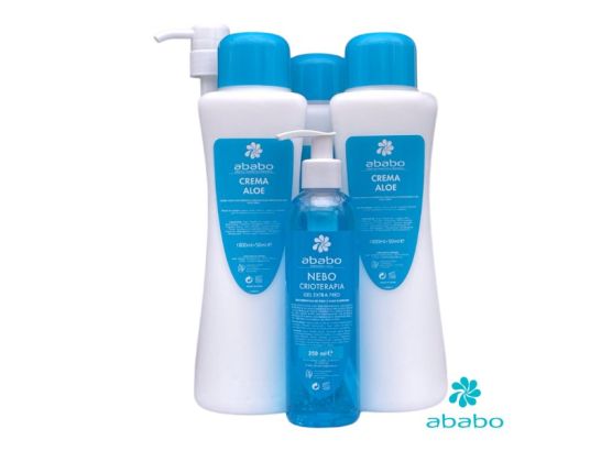 - Pack completo que incluye tres botes de Crema Aloe de 1050ml cada uno, un gel de crioterapia Nebo de 250ml y un dosificador para envases de 1000ml.