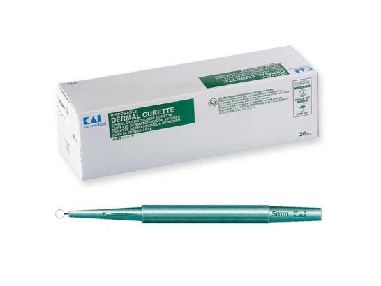 Set de 20 curetas dermatológicas KAI de 3mm para procedimientos precisos y profesionales. ¡Alta calidad y rendimiento excepcional en cada uso!