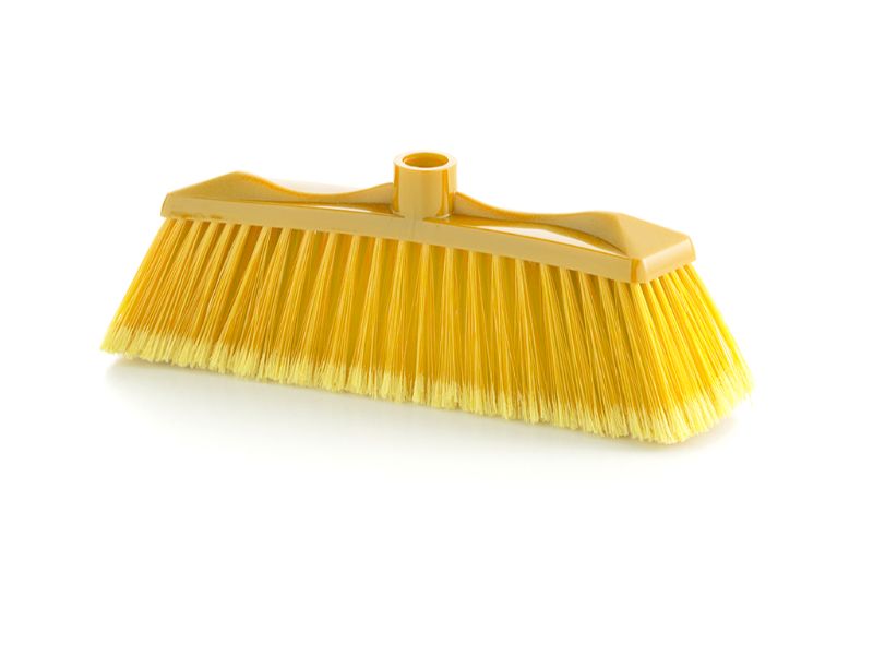 Escoba Colors Amarillo de cerdas suaves para barrido en interiores. La solución perfecta para la limpieza por código de colores.