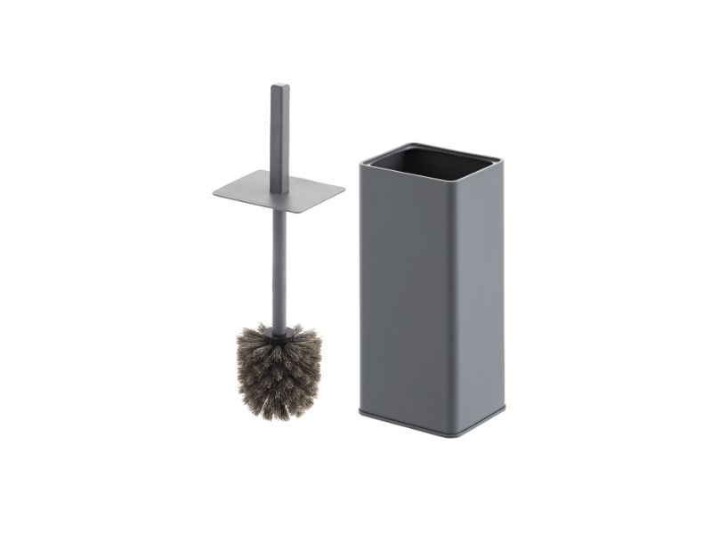 Escobillero completo Kubik, color gris, con dimensiones de 11,5 x 9,5 x 33 cm y peso de 250 gramos. Mango de polipropileno y fibras de PVC.