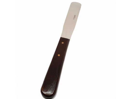 Espátula metálica con mango de madera, ideal para batir y mezclar escayola con precisión y comodidad. Duradera, ergonómica y fácil de limpiar para uso profesional y aficionado.