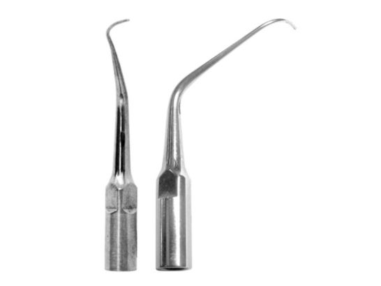 - Punta orientada hacia la derecha, ideal para tratamientos de ablación subgingival y para trabajar eficazmente en las bifurcaciones molarías.