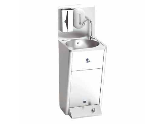 Lavamanos de Columna de Acero Inoxidable con Accionamiento mediante Botón de Pie (no Autónomo), Profesional para Conectar a la Red de Agua, Completo.