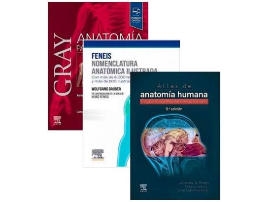 Lote Pack GRAY Anatomía para Estudiantes + FENEIS Nomenclatura Anatómica Ilustrada + ROHEN Atlas de Anatomía Humana