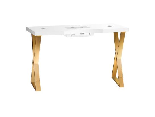 Mesa de manicura Momo 04 con extractor de polvo integrado blanco y dorado