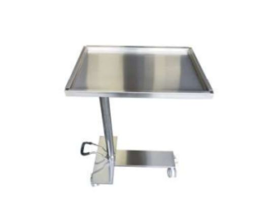 ¡Mesa versátil con bandeja giratoria 360° para mayor comodidad y funcionalidad! Elevación hidráulica, ruedas con freno y acero inoxidable de calidad. ¡Ideal para múltiples usos!