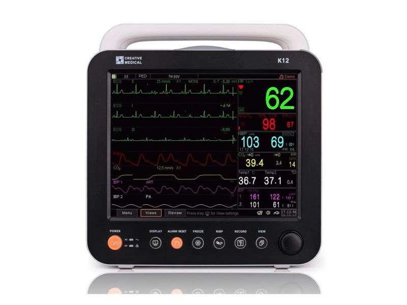 Monitor multiparamétrico de 12,1″ configurado para adaptarse a las necesidades específicas de cualquier departamento clínico u hospitalario. Este Monitor Mod. K12 Nibp-Spo2-Temp-Ecg-Resp-Sidestream Tactil representa la nueva generación de dispositivos avanzados y escalables, diseñados para satisfacer las demandas de todos los niveles hospitalarios.