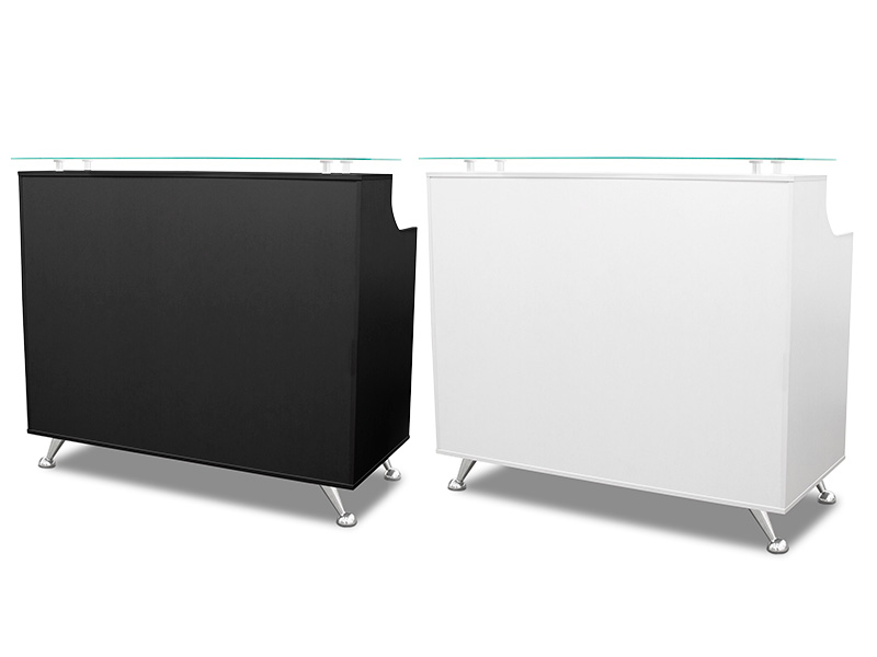 Práctico mostrador que cuenta con un amplio cajón y numerosos estantes. Ideado para salones de peluquería o estética. Cuerpo principal de madera que asienta sobre patas metálicas cromadas.