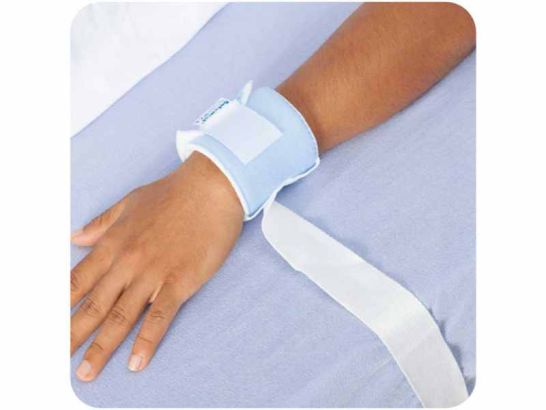 Acolchado integral autorregenerable. Absorbe mejor la presión. Es hipoalérgica. El recubrimiento exterior de Velour celeste permite un fácil y mejor ajuste en todos los casos, de tacto suave. Interior de algodón blanco. Diseño de apertura rápida. Fijación por Velcro. Es más versátil, segura y de fácil sujeción. Mayor protección y confort para el paciente. Evita lesiones por maceración-abrasión. Permite liberar al paciente sin desatar las cintas del bastidor. Ahorra tiempo a enfermería. Mejor acceso a distintos puntos de fijación. Mayor contención.