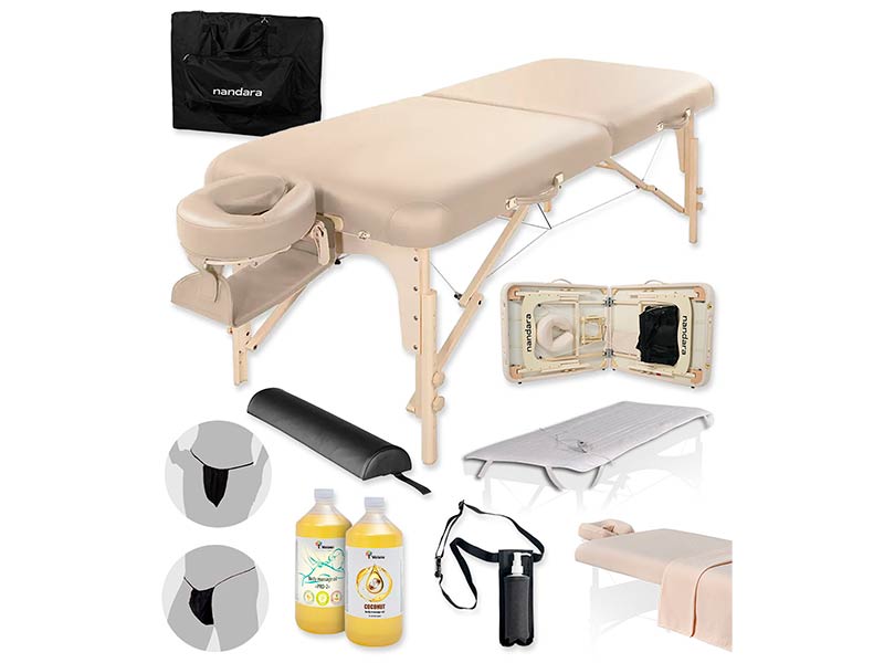 - Camilla de masaje profesional AURA de madera de 76 cm para una comodidad óptima