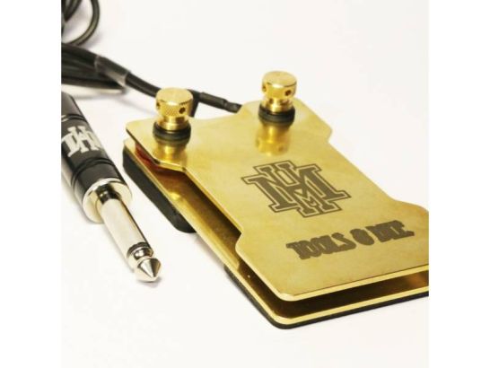 Pedal HM Small ARTESANO. Fabricado en latón con diseño de perfil bajo. Respaldo antideslizante y conector jack de 1/4". Ideal para estudio y viajes.
