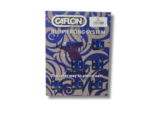 Pendiente dorado grande CAFLON BLU, elegante y versátil. Fabricado en acero quirúrgico con bolas de 4mm. Set de 12 pares de pendientes para lucir con estilo.