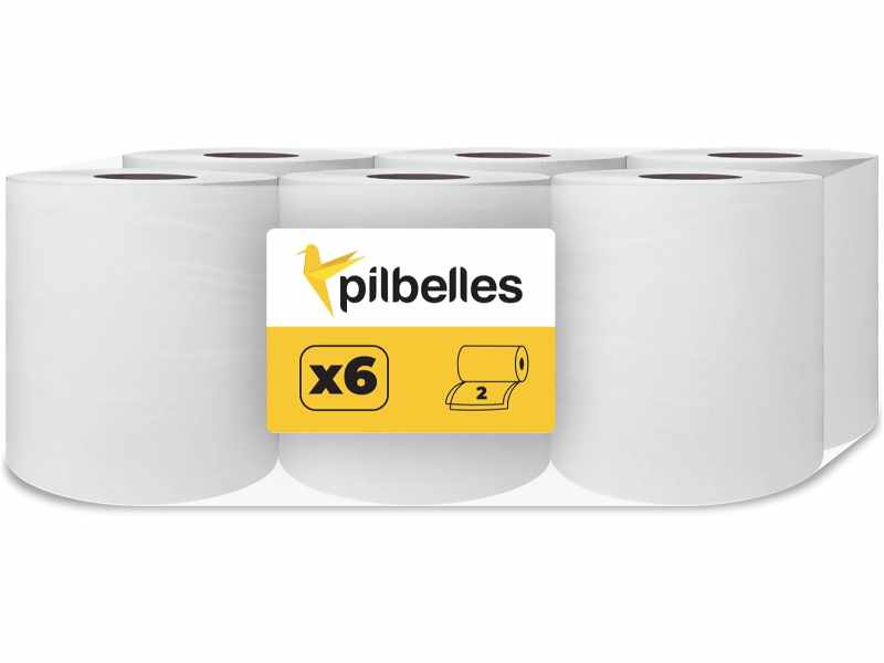 PILBELLES 6 Rollos de Papel Secamanos Mecha Doble Capa Extra Suave | Color Blanco
